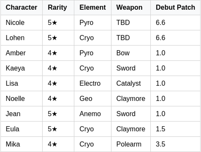 Rumors suggest that version 6.6 will focus on rejuvenating several foundational Mondstadt characters: