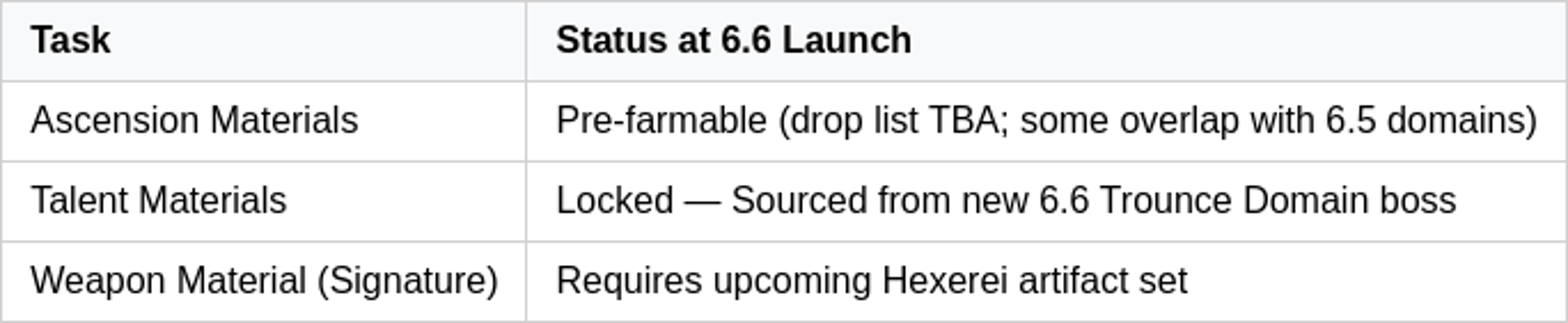 Pemain dapat mulai mengumpulkan material ascension tertentu segera